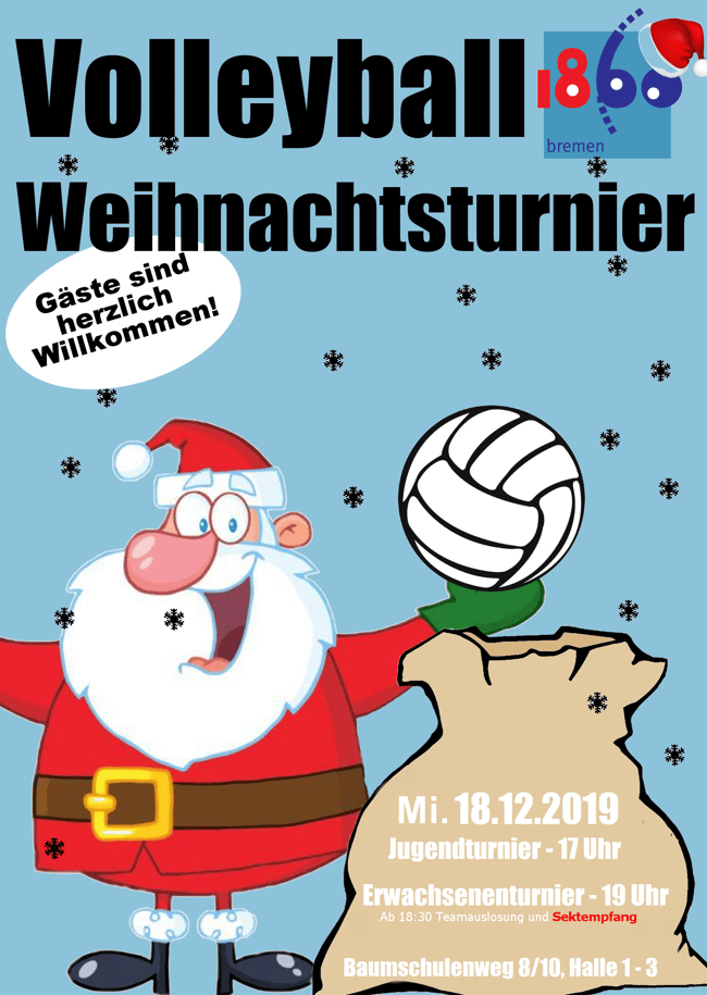 Es steht ganz klar das Zusammenkommen und Spaß haben am Volleyball im Vordergrund. Es sind sowohl Vereinsmitglieder als auch Angehörige und Freunde gern gesehen. Das volleyballerische eines Jeden ist vollkommen zweitrangig. Der weihnachtliche Gedanke steht 💯% im Vordergrund!